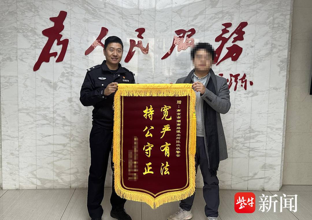 第二日,陳同學特意定制了一面寫有“寬嚴有法持公守正”的錦旗送到派出所,對民警表示感謝。并且撥打了12345政務熱線,贊揚了湖南路派出所民警高效的工作效率。