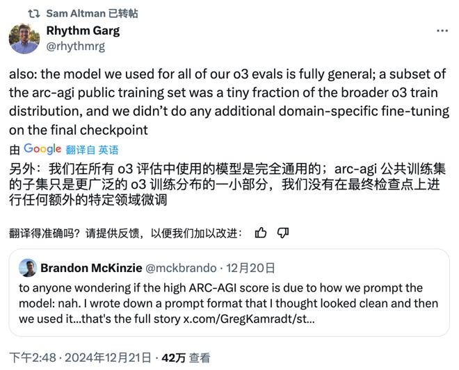 除了以上這種直給式力挺,還有一些OpenAI研究員承擔了答疑解惑的角色,試圖通過分享觀點來澄清一些問題。