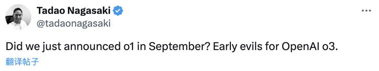 連OpenAI日本辦公室總裁Tadao Nagasaki也出來捧場:“我們不是才在九月份發布了 o1?現在已經開始對o3 早期評估了!”