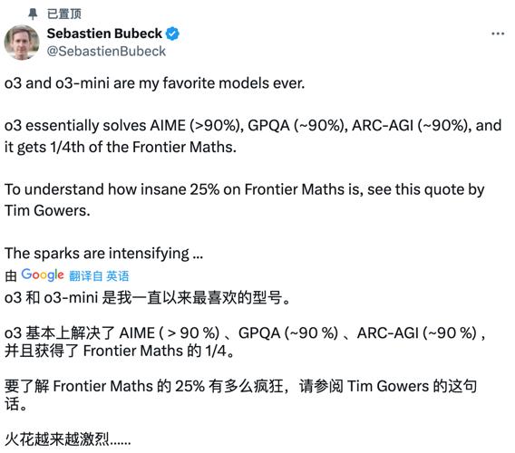 在微軟研究院工作了十年、曾擔任AI副總裁及杰出科學家的知名計算機大佬Sébastien Bubeck,于今年10月入職了OpenAI。他在置頂推文中坦言,o3和o3-mini是自己截至目前最喜歡的模型,o3各項評估簡直封神,特別是前沿數學25%的測試成績。