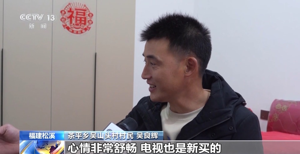 茶平鄉(xiāng)吳山頭村村民吳良輝:心情非常舒暢,電視也是新買的,衣柜還有床都是新買的,整個房子非常溫馨,可以在這里過個溫馨的年。