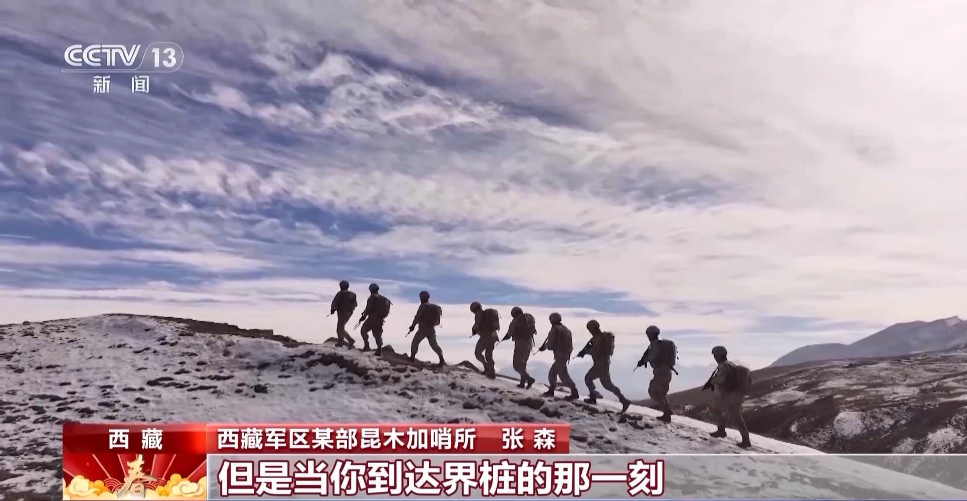 西藏軍區某部昆木加哨所巡邏官兵:我們在海拔5300米的25號界樁,祝偉大祖國繁榮昌盛!祝全國人民新春快樂!戰位有我,請祖國和人民放心!
