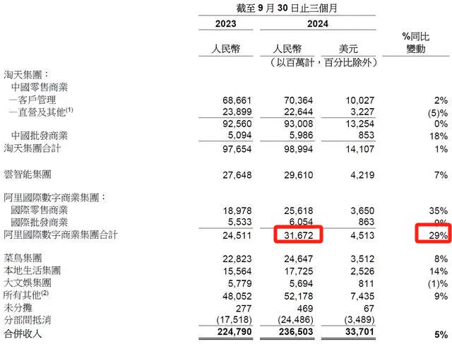 該季度,阿里國際業務的營收規模僅次于淘天集團的990億元,略高于云智能集團的296億元和菜鳥集團的246億元,成功躋身集團第二大營收支柱。