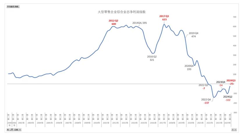 圖:大型零售企業總也業態凈利潤指數,來源:中國百貨商業協會