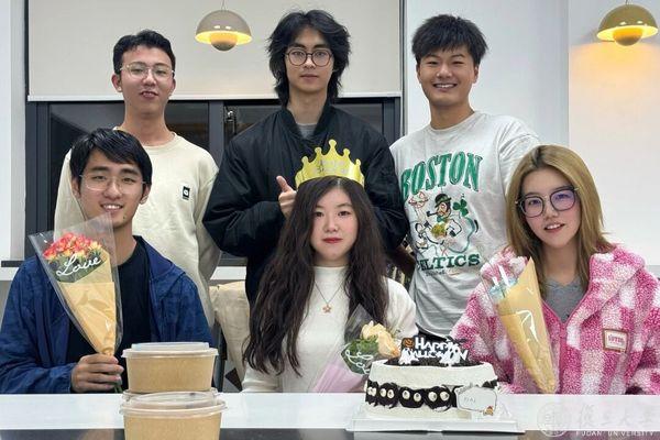 團隊慶祝點睛AI產品雛形誕生暨團隊成員丁聞玥生日(上排從左往右:盧子誠、趙康西、霍暢;下排從左往右 張明涵、丁聞玥、方子嫣)