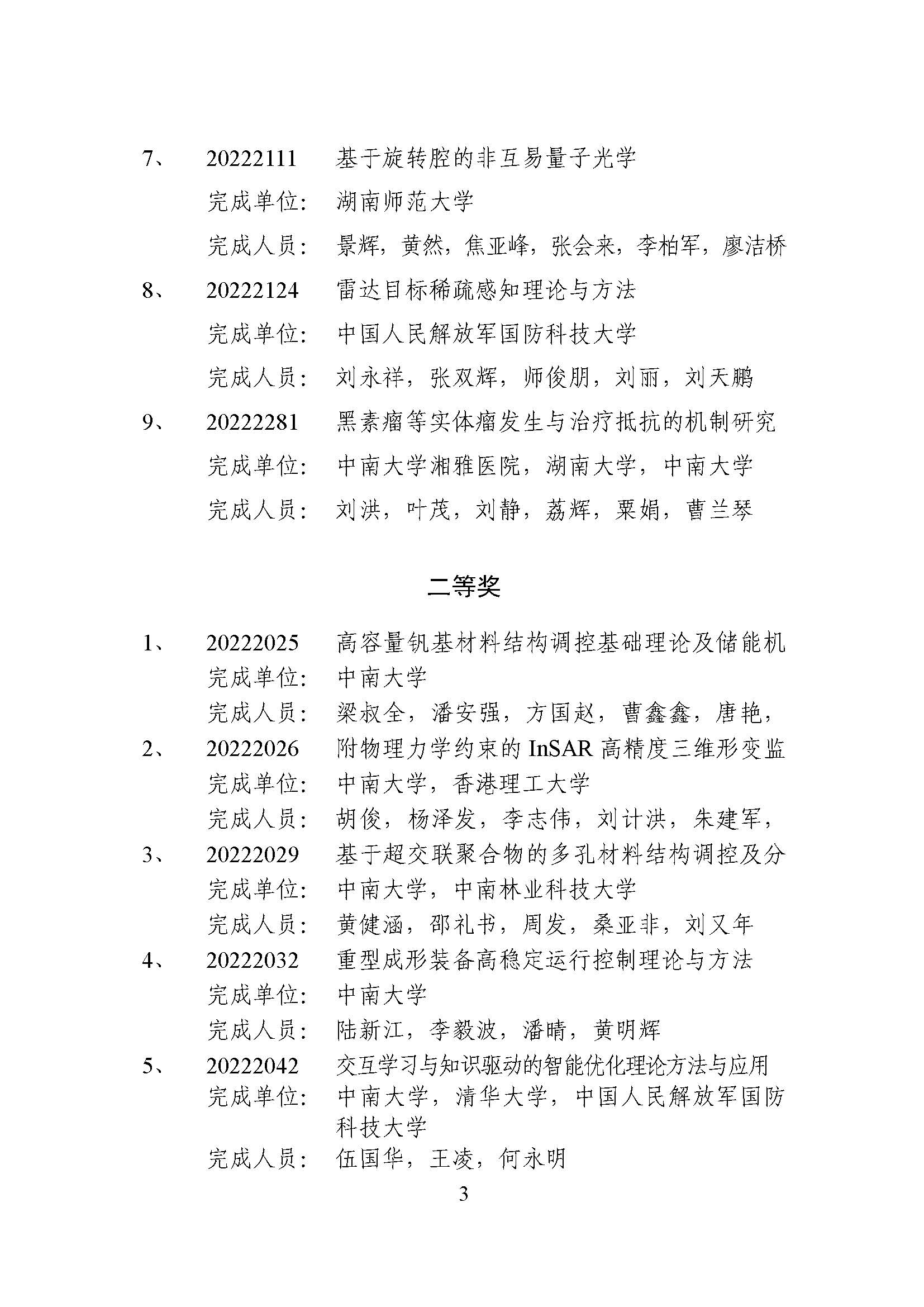 1項杰出貢獻獎,2022湖南省科學技術(shù)獎公示