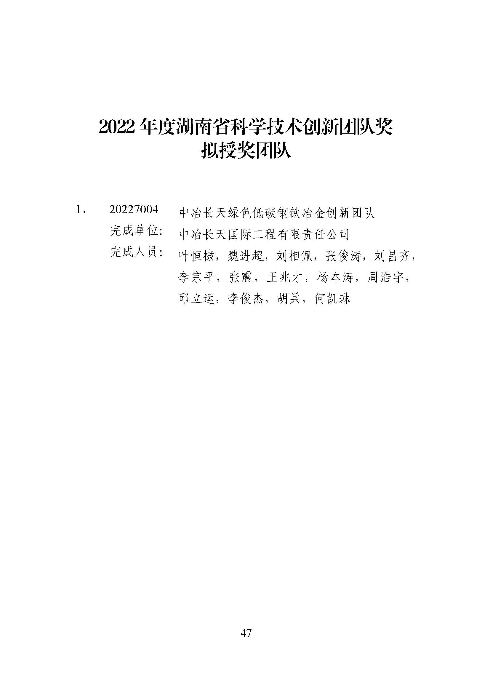 2022年度湖南省科學技術(shù)獎擬授獎通用項目(團隊、人選)公示